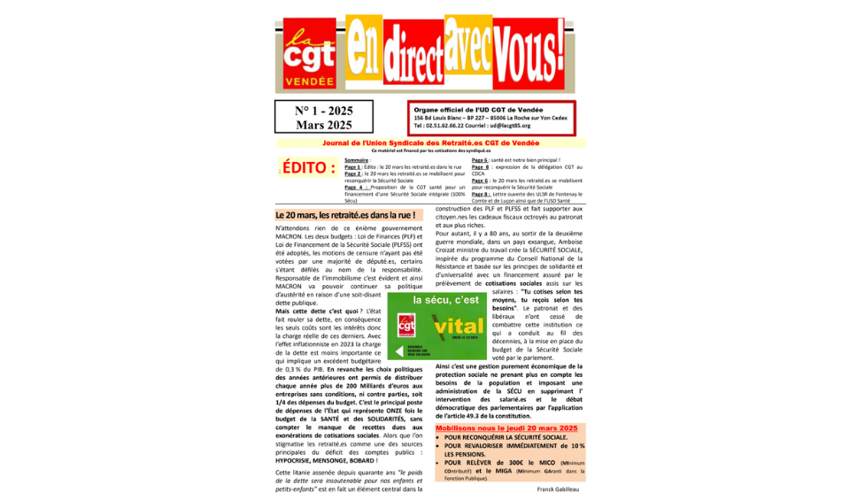 Page 2 : le 20 mars les retraité.es se mobilisent pour reconquérir la Sécurité Sociale